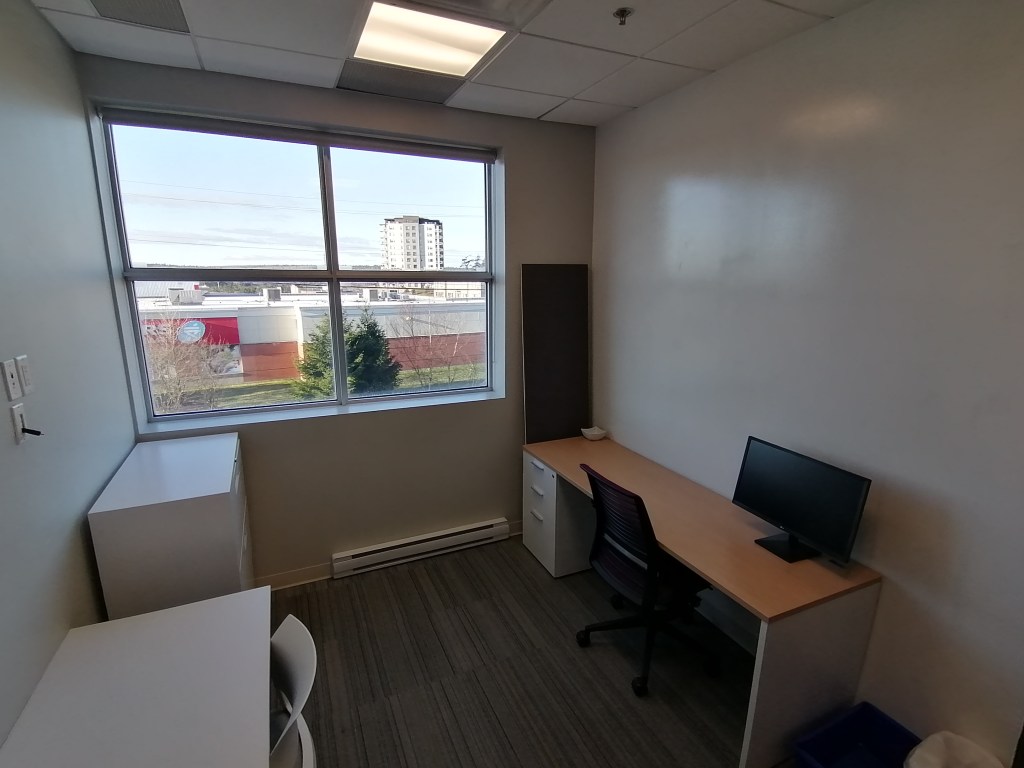 9 Mile Business Centre is a dynamic workspace dedicated to supporting local businesses with a strong commitment to diversity and inclusion. Within their office space, they have two offices available to rent. Each of the offices are 13ft x 10 ft totaling 130 sq.ft each. Each office is designed with privacy in mind – it’s sound muffled, located close to gender-neutral washrooms, and is fully accessible. The office is an internal space without a window, which some clients find particularly appealing for the added privacy and focus it provides. The rent is $1100/month plus tax.